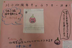 1学期に情報委員会の児童から、金沢市の小学校でキャラクターを作成したという新聞記事を読み、「川北小学校でも150周年のキャラクターを作りたい!」の意見があり、私(校長)も賛成~!