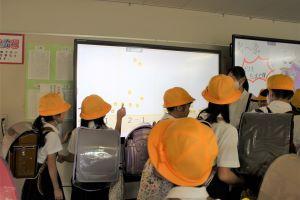 元気なあいさつができたら、電子黒板にタッチすると、ニコニコマークがつきます。