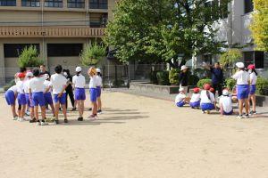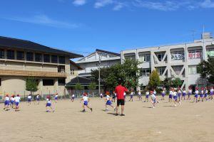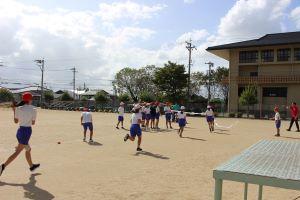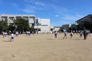 今週は、運動場に出て、実際の場所を確認しながらの練習です。