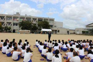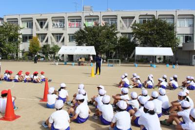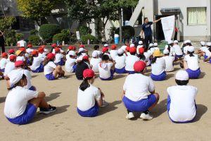 朝からの雨でお天気が心配でしたが、晴れ間をぬって4限目に行いました。