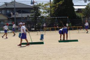今日は午後から、5,6年生が、明日の運動会の準備をしました。