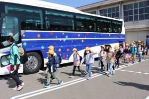 子どもたちは、笑顔いっぱい、わくわくしながらバスに乗り込みました。