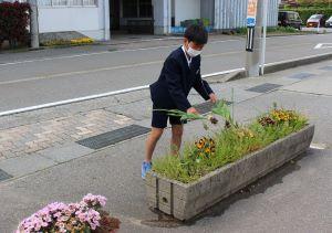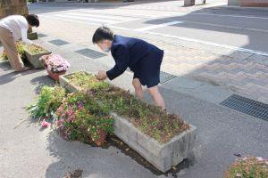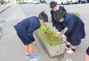 環境委員会では、玄関前や運動場の花壇のお世話をしています。