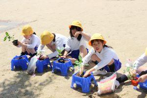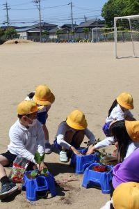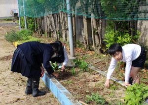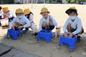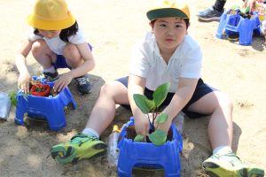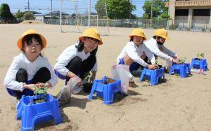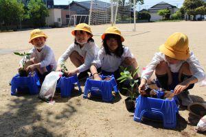 今日は、2年生が生活科の時間に、野菜の苗植えを行いました。