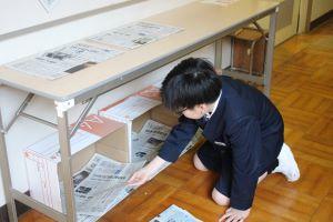 机の上には、全国紙と地方紙の2紙が置いてあり、情報委員が毎日、貼り替えたり取り替えたりしています。