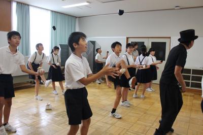 3限目は6年生対象にワークショップがあり、表現することやジャグリングに挑戦しました。