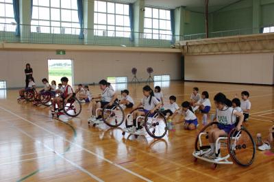 競技用車いすに乗ったり、車いすバスケットボールの試合をしたりと楽しい貴重な体験をしました。頑張っている仲間を応援することの大切さ、応援こそが力になることを実感していました。