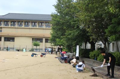 保護者の方や5・6年児童のおかげで、とてもきれいな学校になりました。今度の運動会も気持ちよく行うことができそうです。本当にありがとうございました。