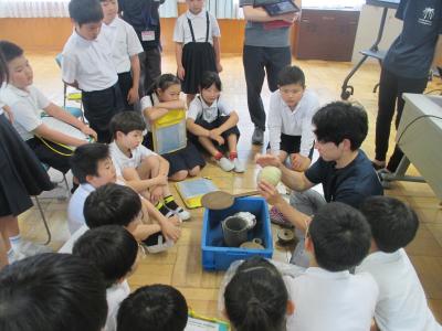 最後に、子どもたちのいろいろな質問に対して、答えてくださいました。そして、花火を作るのを実演してくださいました。子どもたちは10号玉も持たせてもらい、その重さにびっくりしていました。