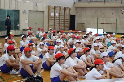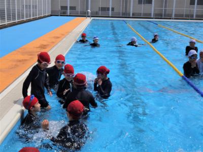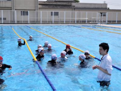 まだ学習が始まったばかりで、まず久しぶりのプールに慣れることが中心の授業です。暑さが厳しく熱中症の心配も
