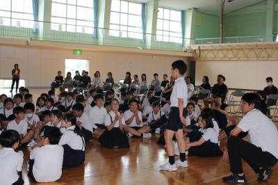 演技が終わると、3小学校の交流タイムです。先月修学旅行に一緒に行った仲間達との交流は、最初から和やかな雰