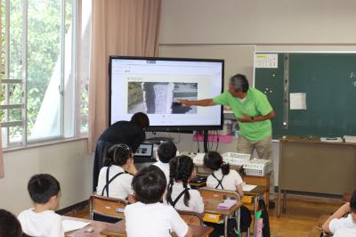 児童からは、「神社になぜ馬の石像があるの?」や「公民館に大きな石碑があるのはなぜ?」などの質問をしていました。その質問に対して、写真を使って説明したり、昔の言い伝えなどをお話ししたりしてくださいました。