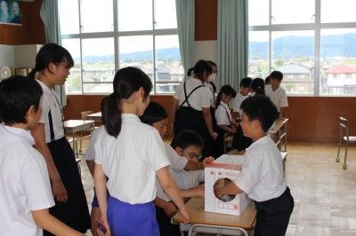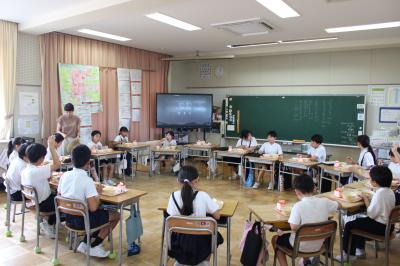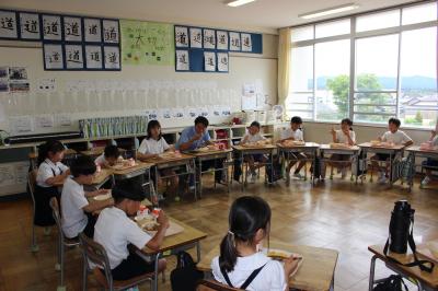 最初に、グルーブで輪になって、給食を食べました。普段、あまり話す機会がないので、お互いにいろいろな質問をしたりしながら、楽しく食べました。