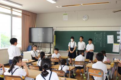 最後に、児童がインタビューをしての感想を田島先生に伝えました。「はじめて知ったことがあったので、おどろきました」や「わかったことを伝えていきたいです」などの感想を言っていました。