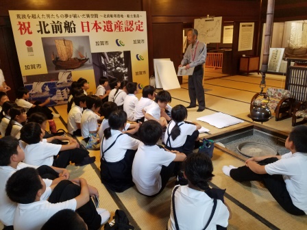6月30日(金)5年生が北前船の里資料館に、総合的な学習の時間として社会見学に行きました。今、お話パレットでもお世話になっている呉藤さんにユーモアを交えた、楽しい解説をしていただきました。