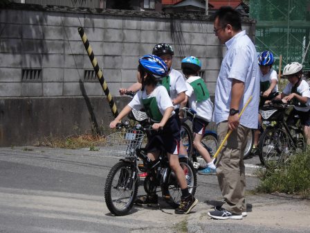 路上練習では、みんな真剣な顔で係の方の指示に従って運転していました。今日教えていただいたことを忘れずに、交通事故のない河南小学校にしていきましょう。