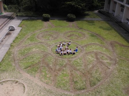 先日、中庭に「バイキンマン」が描かれました。教頭先生の力作です。本校では、初代「ミッキーマウス」2代目「アンパンマン」に続き、3代目がこの「バイキンマン」となりました。バイキンマンは悪者ですが、なぜかいつも失敗ばかりして、憎めないキャラクターです。