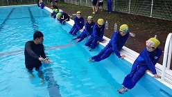 7月9日あいにくの雨の中でしたが、例年6年生だけで行っている着衣泳の学習を今年は、5,6年生で行いました。雨の中だったので、短い時間でしたが加賀市の消防隊6人の皆さんに的確に指導いただきました。ほとんどの子ども達が浮くことができて子ども達も満足していました。