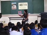 まず、「きたかぜがくれた テーブルかけ」の読み聞かせをしてくださいました。「なるほどそういう落ちか。」と思うとても面白いお話でした。大変表情豊かに読んでくださいました。