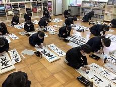 1月8日金曜日、3学期のスタートです。全校で書き初め大会を行い、腕を振るいました。