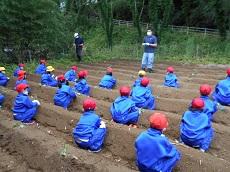 学校が再開した2日目、低学年がさつまいもの苗を植えました。T距離を保ちながら、植える事が出来ました。おおきくなーれ!