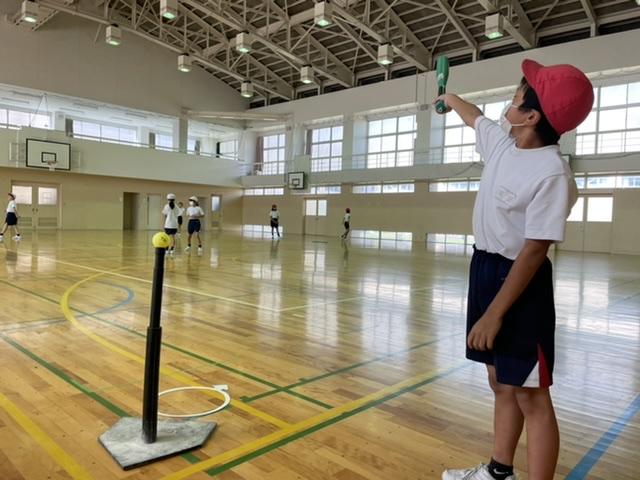ルールを工夫したり、守備位置や打つ作戦を考えて、ティーボールを楽しんでいます。