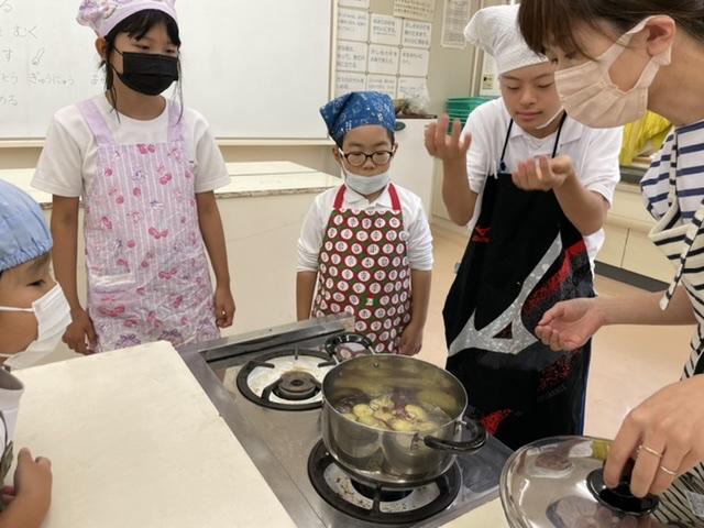 自分たちで育てて、収穫したサツマイモを使って茶巾しぼりを作っています。