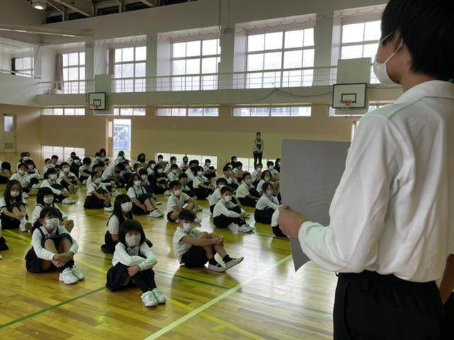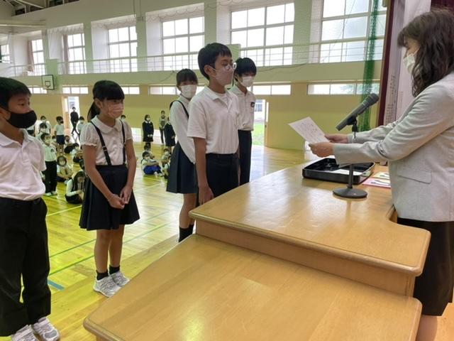2022年10月5日 20時19分全校集会が行われました。6年生の返事、抱負が体育館に響き渡りました。下級生のお手本となる素晴らしい姿に拍手です。
