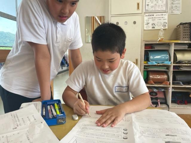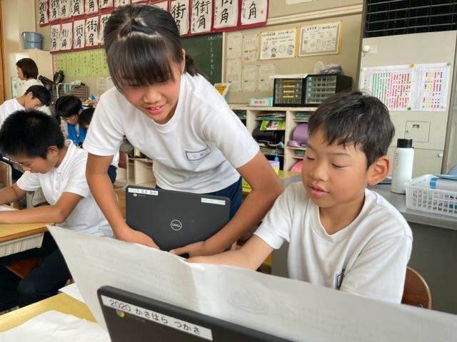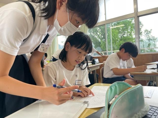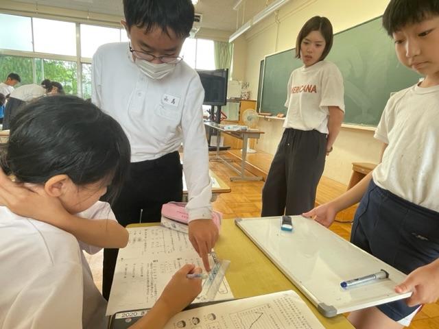 学年を越えての授業。自ら学ぶ子続出。誰一人取り残すことなく、学ぶことの楽しさを実感させ、教える方も教えられる方も自己有用感を味わうことができる。