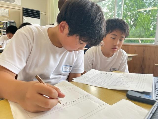 教室のあちらこちらに散らばって考えていました。
