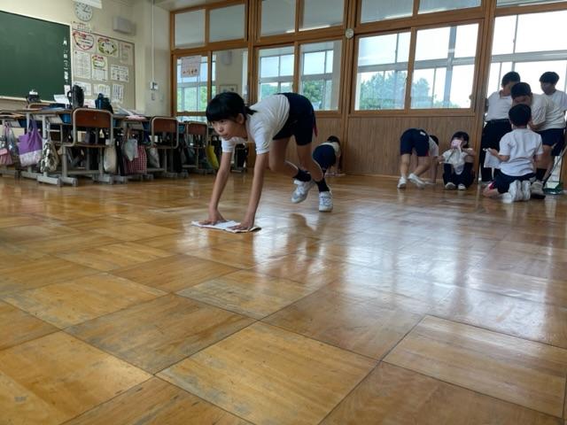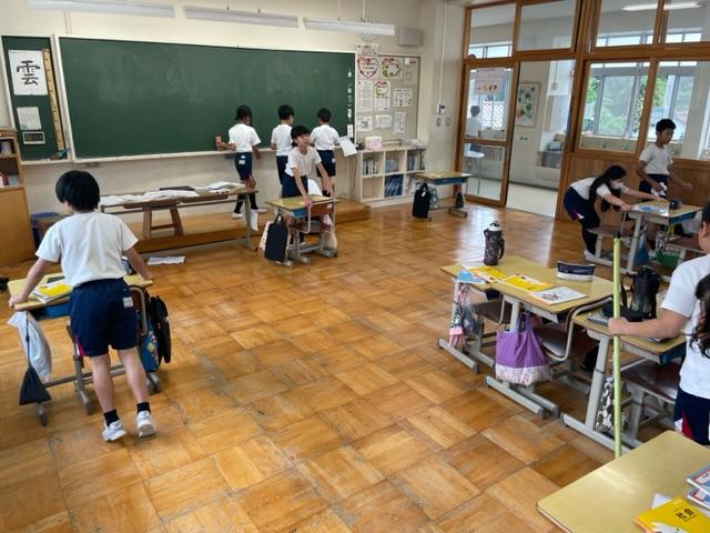 自分たちの教室は、自分たちでキレイにします。ついに、机を移動して掃除するクラスが出てきました。