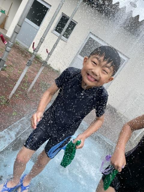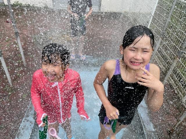 いつもなら6月の初めに入っていますが、今年度は訳あって遅くプール開きです。そのせいか、少し曇っていましたが、みんな楽しさマックスです。