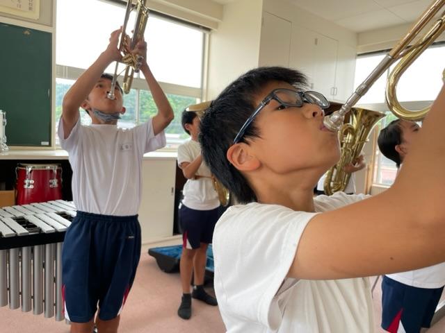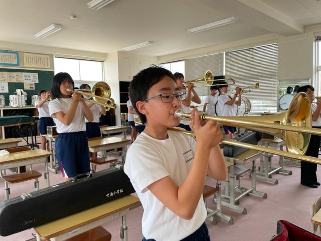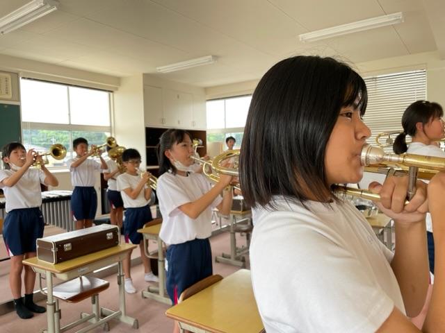 2023年7月6日 21時40分昼休みのことです。体育館に行こうと歩いていると3階の音楽室から力強い音が聞こえてきました。行ってみるとマーチングの演奏の練習をしていました。