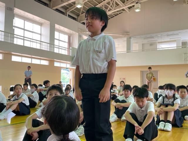児童集会が行われました。45月の挨拶についてのふりかえりや67月の生活目標についての提案が運営委員会からありました。
