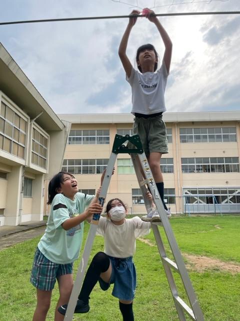 また、放課後には、自分たちで集まりひょうたんやヘチマの棚にネットをかけていました。