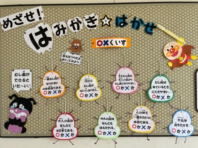 ただいま「歯と口の健康週間」です。ということで、健康委員会が歯に関するクイズが校内のいたるところに設置されています。