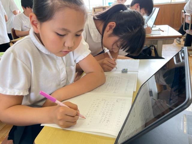 2023年6月9日 06時14分今では当たり前に机の上にある端末、教科書と一緒に使うことでさらに詳しいことが分かります。観察しながら、調べることもできます。