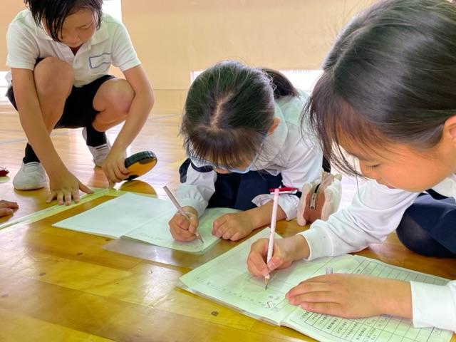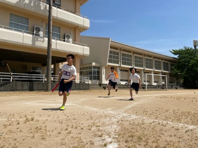 6年生が5年生を誘って、リレーの練習をしていました。5年生vs6年生で、勝負し、5年生からよい刺激をもらっていました。