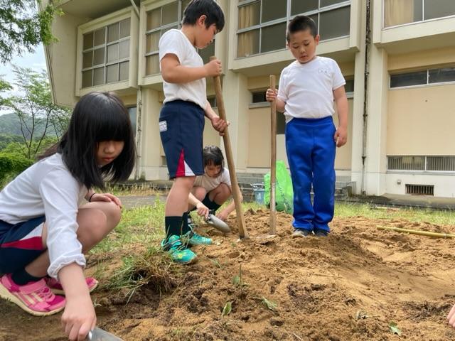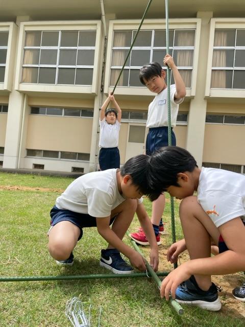 ヒョウタンとヘチマを育てるため、畝や棚を作りました。どんなふうに作るか話し合いながら、試行錯誤しながら、作りました|•'-'•)وナイス!