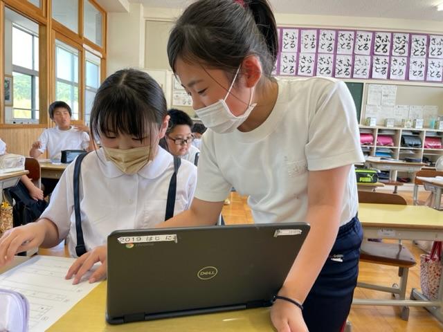 5年生が6年生に勉強を教えてもらう授業を行いました。どの子もびっくりするくらいに集中していたし、難しい算数の問題に挑戦していたし、説明していました。