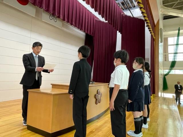 今年初めての全校集会が行われました。その中で任命証が手渡されました。