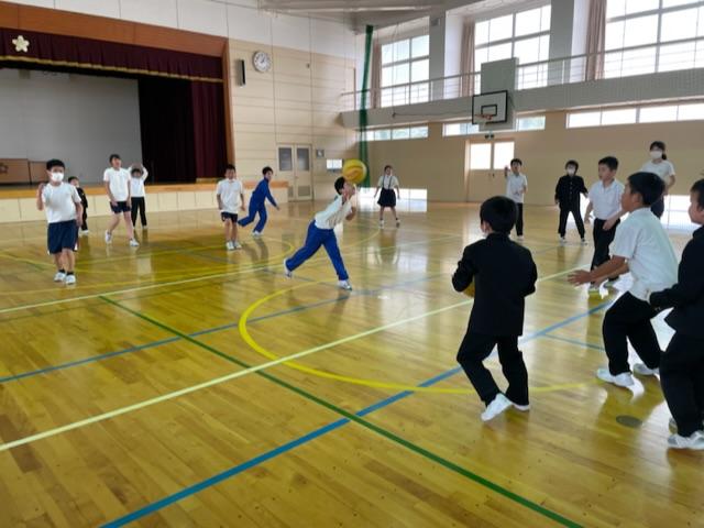 昼休みに体育館に行くと56年生が楽しそうにドッジボールをしていたのでまぜてもらいました。