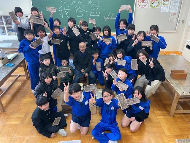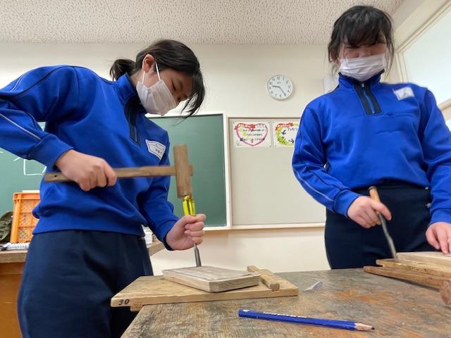 卒業制作第2弾山中温泉の伝統工芸のひとつ「我谷盆」づくりに挑戦してみました。ノミと木槌を使い、ステキな作品が完成しました(*^^*)