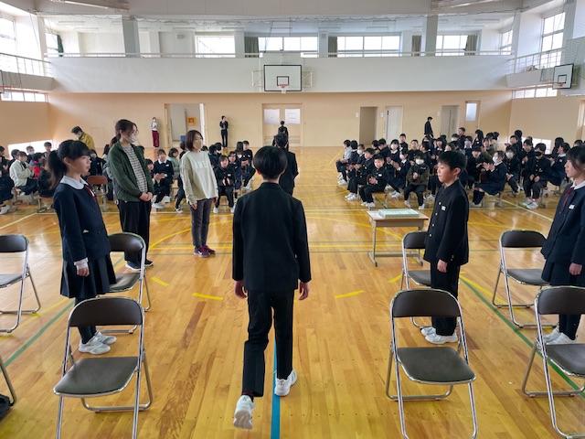 来年度からのシン集団登校班がうまくいくように、6年生から5年生に分団会の仕事を引き継ぎました。