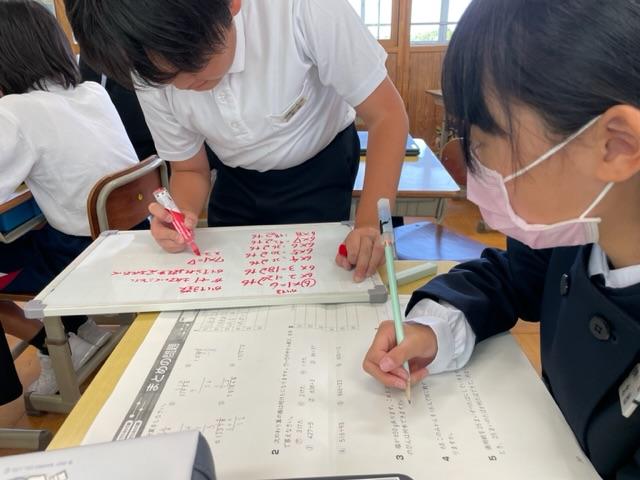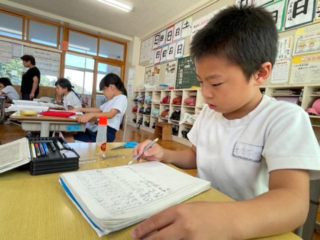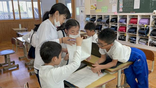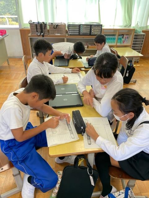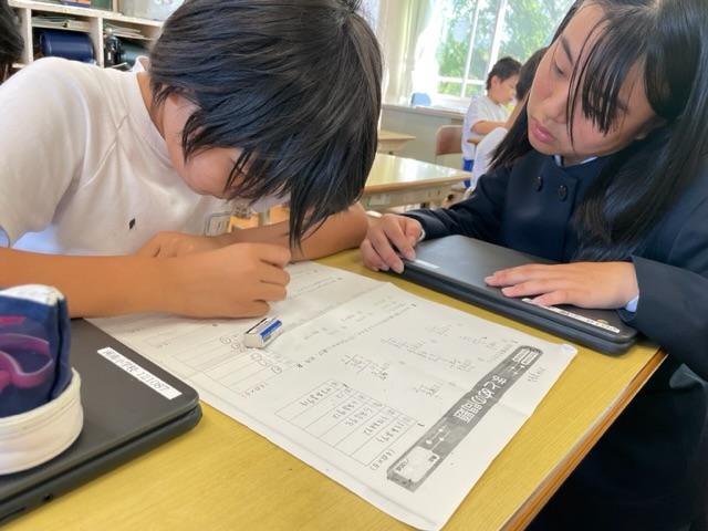 今年度、河南小学校では他の学年と勉強しています。この授業では、子どもたちが自然と聞き合い、教え合いながら勉強していく姿が本当によく見られます。
