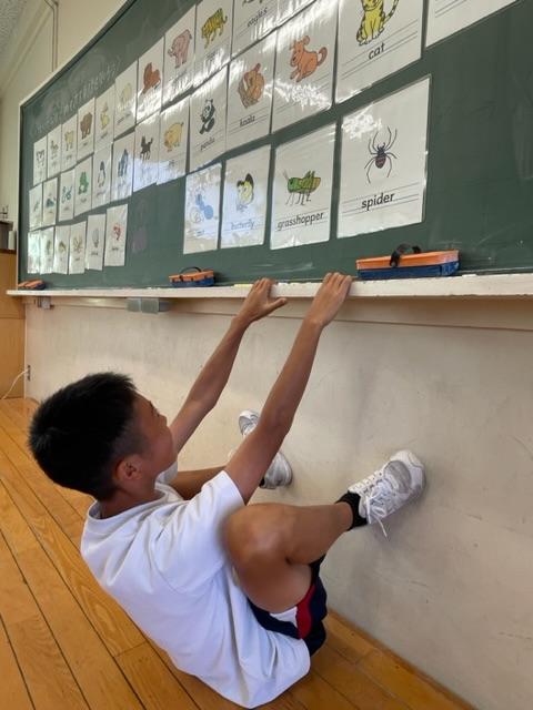 英語の授業では、ジェスチャーゲームをして生き物の英語での言い方を学びました(*^^*)