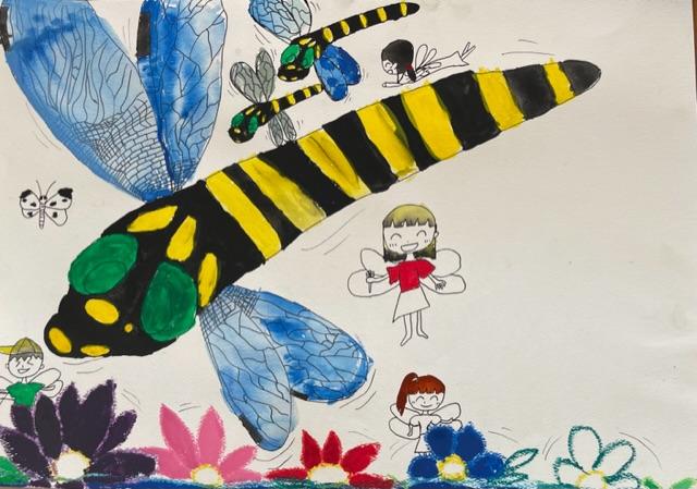 図工で絵を書いているようで、途中ですが作品が並べられていました。