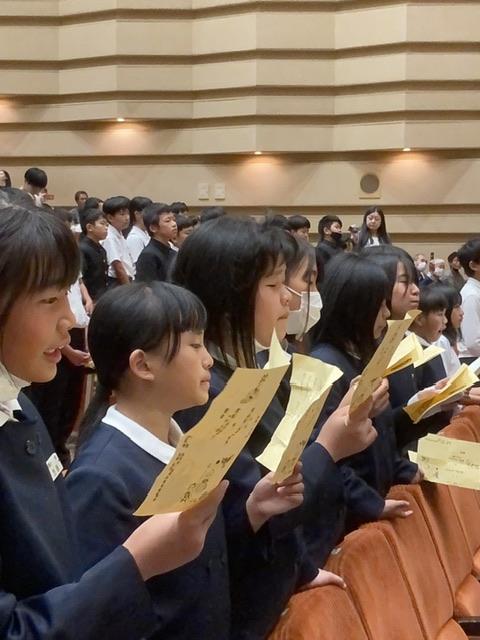 市の文化会館で加賀市中の56年生が集い「千人謡」が行われました。朝の会などのスキマの時間にも練習を重ねてき羽衣を唄いました。