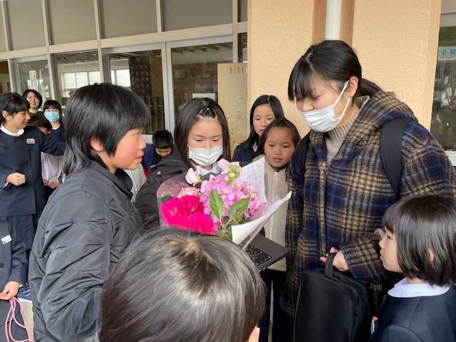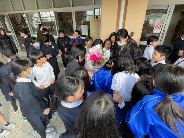 2学期からお世話になっていた学生ボランティアの先生と今日でさよならです。昼休みにはたくさんの子どもたちがお見送りに玄関に集まりました。゚(っ৹ т )゚