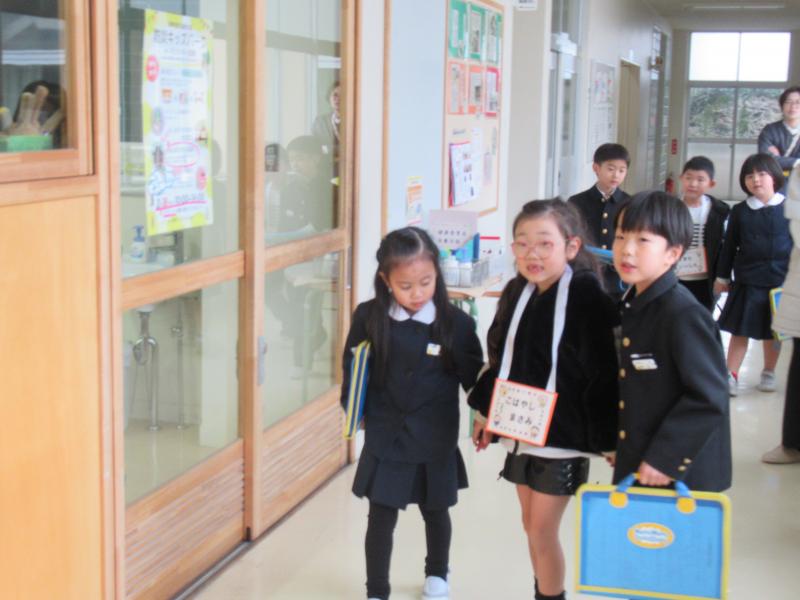 来年度入学するおともだちが学校にやってきました。1年生がお迎えして、学校を案内してくれました。